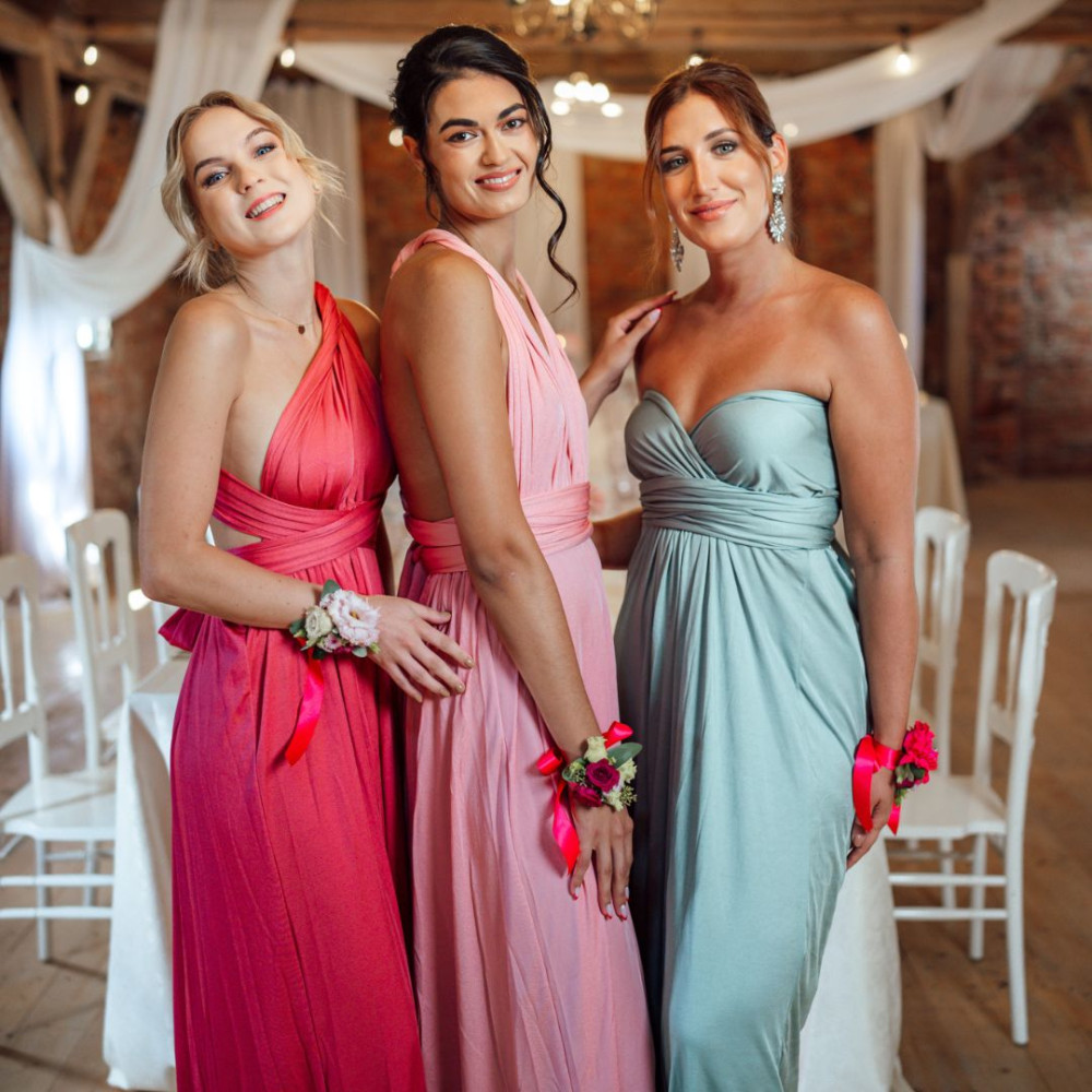 Convertibles® šaty jsou velmi originální, konvertibilní, vázací, multifunkční nebo také variabilní šaty, které lze zavázat na mnoho různých způsobů. Hodí se jako šaty pro družičky a svatební hosty na svatby, šaty na plesy, večírky i letní oslavy a party, i jako model, který využijete několikrát do tanečních a na taneční lekce.