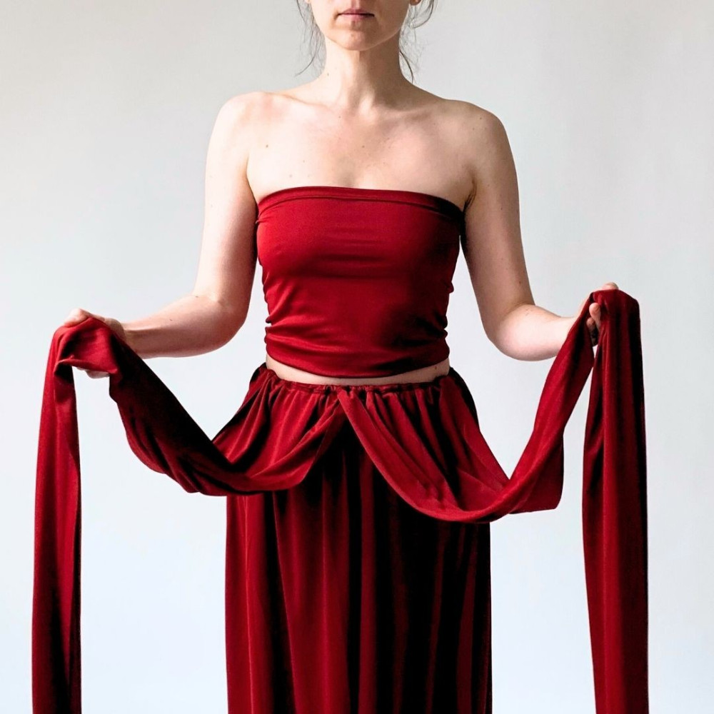 Velmi důležitou součástí každých variabilních šatů kolekce Bohème je bandeau top přes prsa (dříve bolerko), který dáváme ke každým šatům ZDARMA v základní velikosti, která pruží do obvodu hrudníku cca 100 cm (na objednávku došíváme i větší).