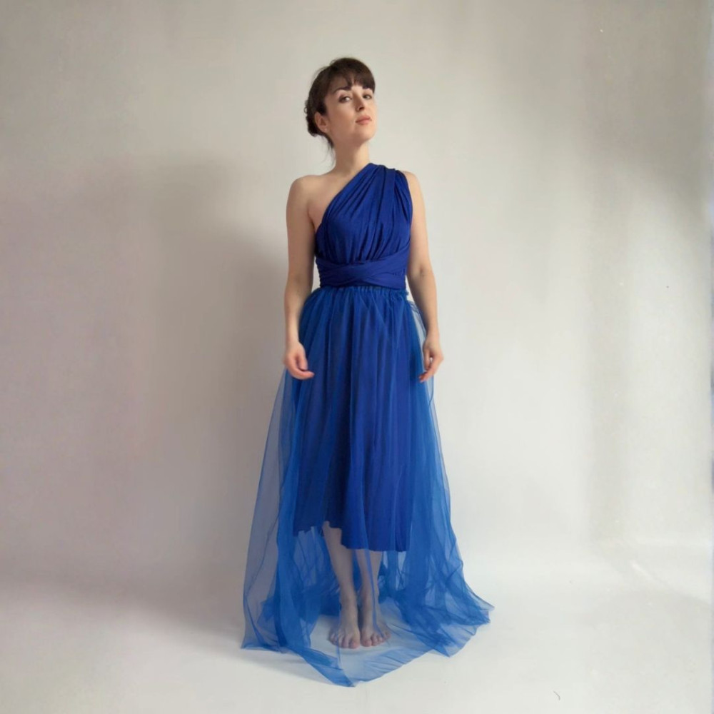 Tento komplet zahrnuje MIDI variabilní šaty (v délce 80 cm od gumičky v pase) a DLOUHOU tylovou sukni (v délce 115 cm od gumičky v pase). Oba produkty se dají nosit samostatně.