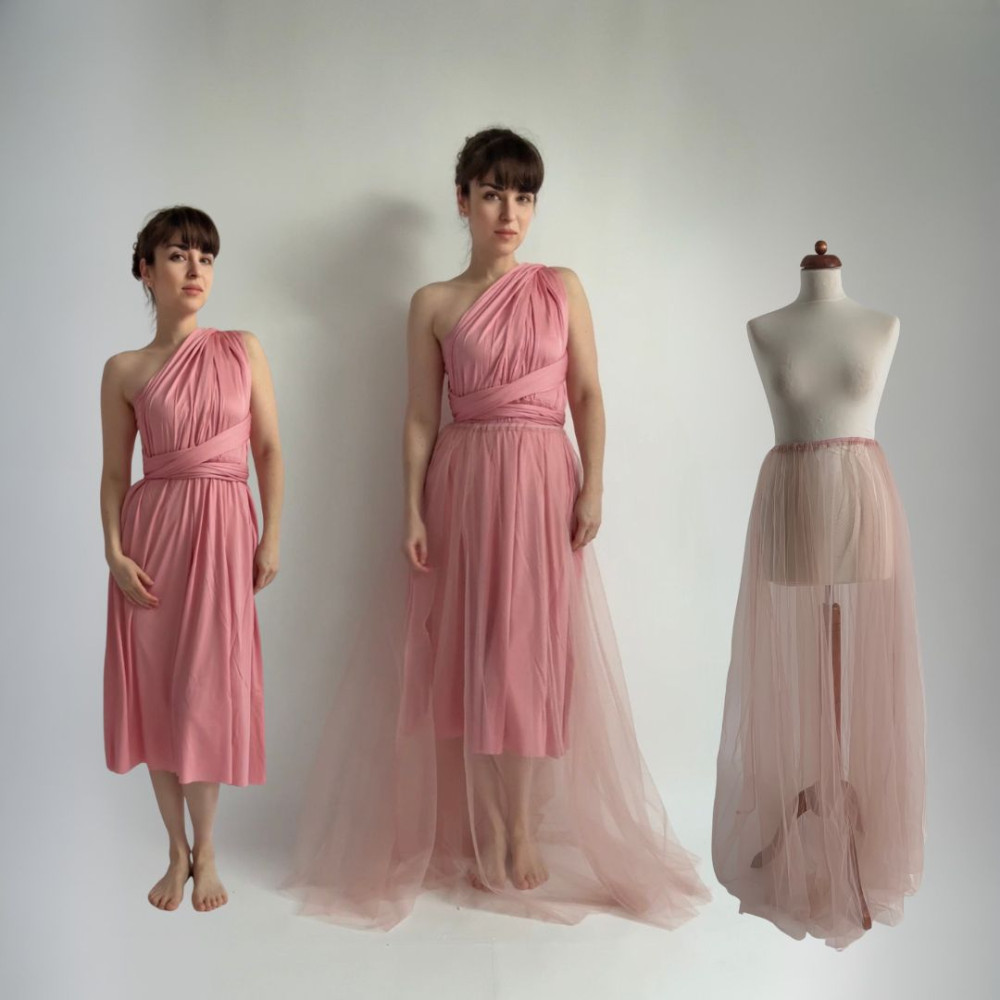 Zvýhodněná sada MIDI variabilních dlouhých šatů (v délce 80 cm od gumičky v pase na zem) z kolekce Bohème v provedení Convertibles® NILPLA® a DLOUHÉ tylové sukně Convertibles® (v délce 115 cm od gumičky v pase na zem).