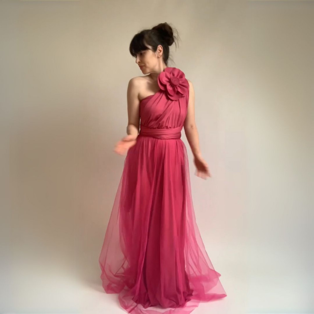Zvýhodněná sada variabilních dlouhých šatů z kolekce Bohème a tylové sukně a květiny ve stejné barvě šatů v provedení Convertibles® cirkulární materiál NILPLA®.