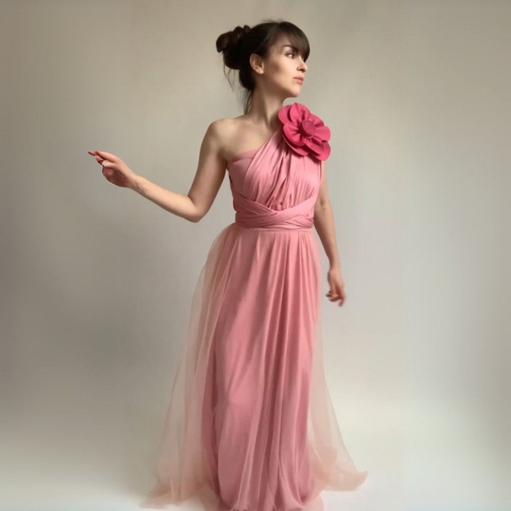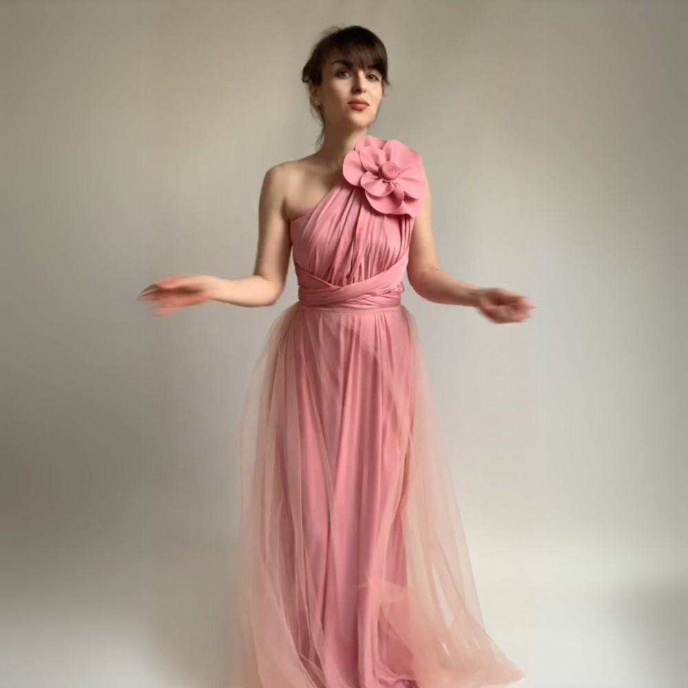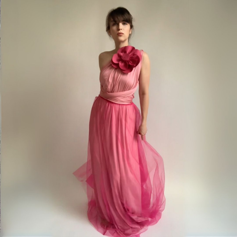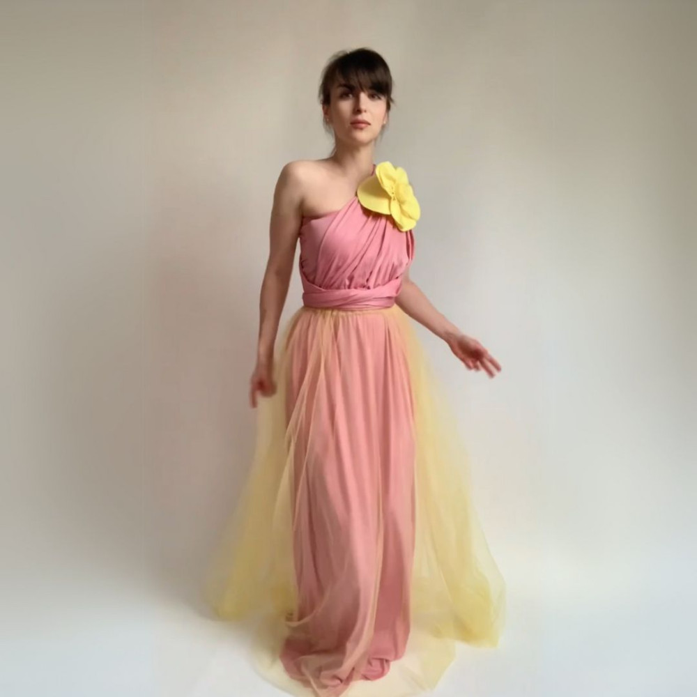 Zvýhodněná sada variabilních dlouhých šatů z kolekce Bohème a tylové sukně a květiny ve stejné barvě šatů v provedení Convertibles® cirkulární materiál NILPLA®.