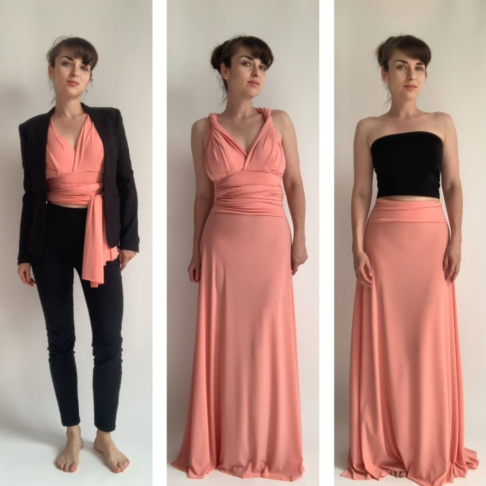 V tomto setu najdete stejnobarevný crop top střihu Boheme a dlouhou sukni. Oboje části lze nosit samostatně. Dohromady tvoří stejnobarevné šaty.