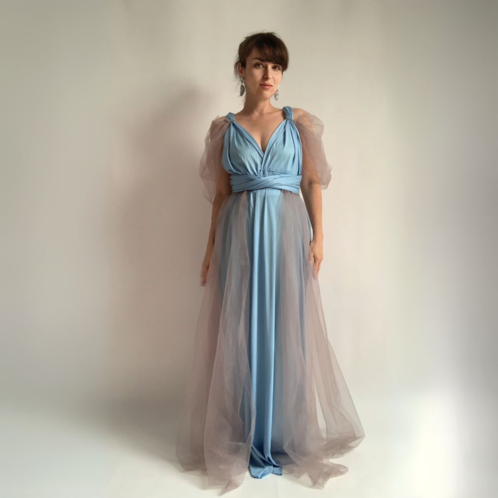 Tento komplet z CREATIVE COLLECTION je sada variabilních dlouhých šatů z kolekce Bohème NILPLA®, tylové rozhrnovací sukně a tylových rukávků.