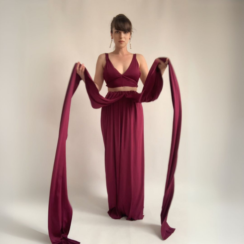 Velmi důležitou součástí každých variabilních šatů kolekce Bohème je bolerko/top, který dáváme ke každým šatům ZDARMA v základní velikosti, která pruží do obvodu hrudníku cca 100 cm (na objednávku došíváme i větší).