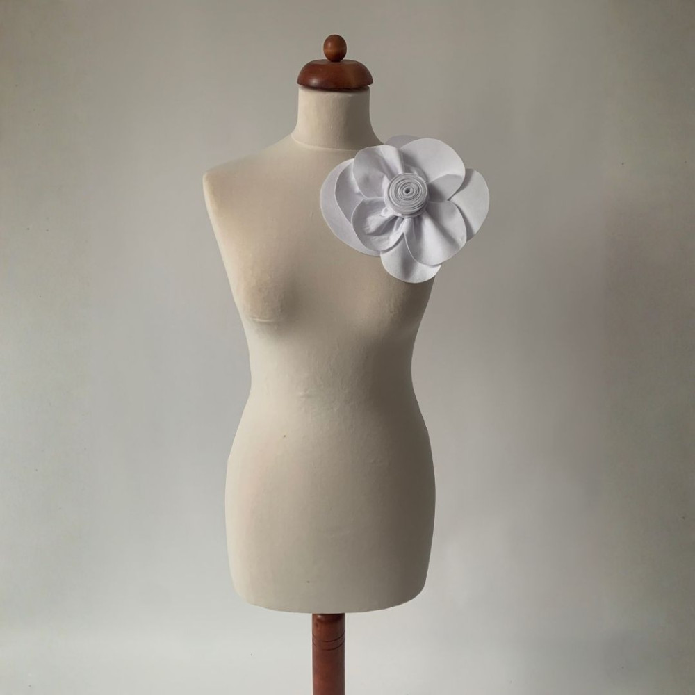 Velká květina je náš originální doplněk k variabilním šatům. Dá se připnout kamkoliv na šaty, na ruku nebo jako fascinátor na hlavu. Je ručně vyrobena z klasického materiálu (polyester/elastan).