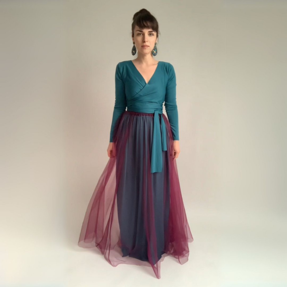 - vínové šaty s vínovou tylovou sukní nebo smaragdovou tylovou sukní,