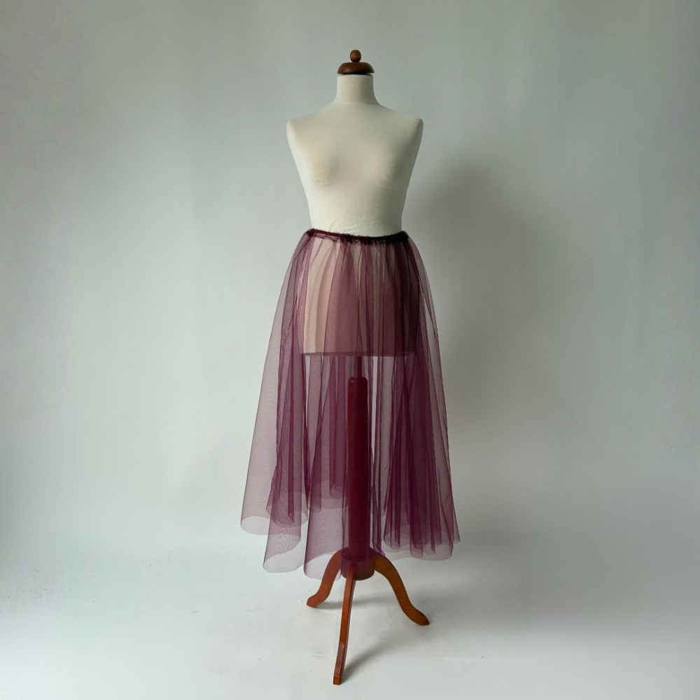 Midi tylová sukně je ideální doplňkem k šatům Convertibles®, je dlouhá 80 cm od gumičky v pase. Je vyrobena z jedné vrstvy splývavého tylu.